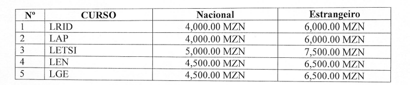 Universidade Joaquim Chissano propinas